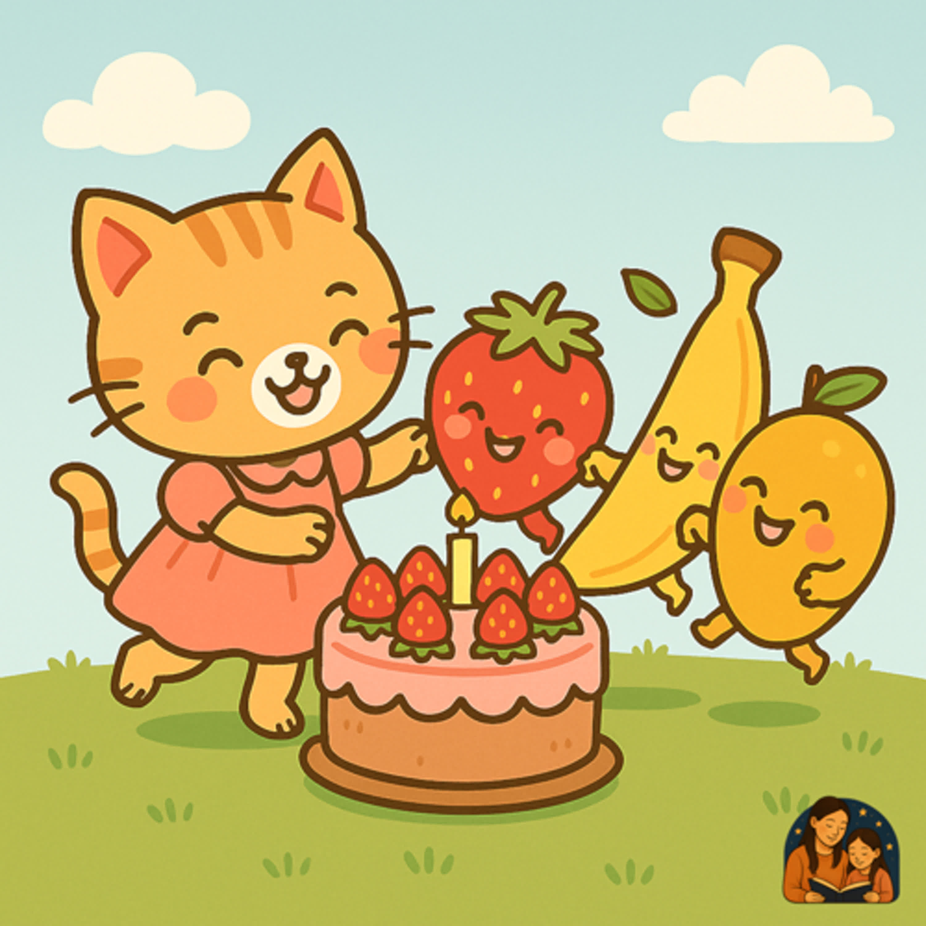 小貓咪咪夢見自己參加了草莓人的生日派對,和西瓜哥哥、葡萄姐姐、香蕉弟弟、橘子小子一起跳舞、唱歌、玩遊戲,還遇到會唱歌的草莓果醬!?